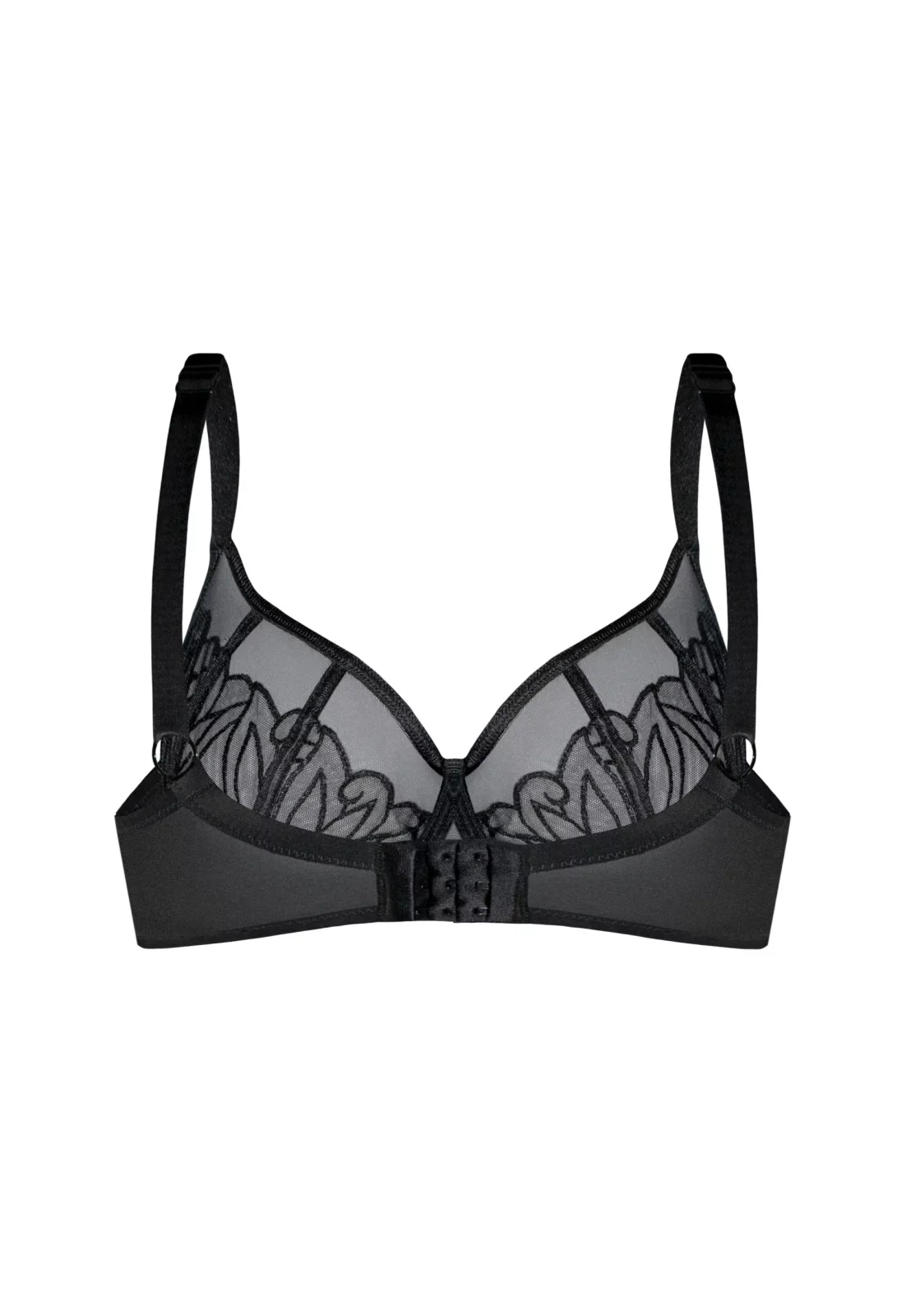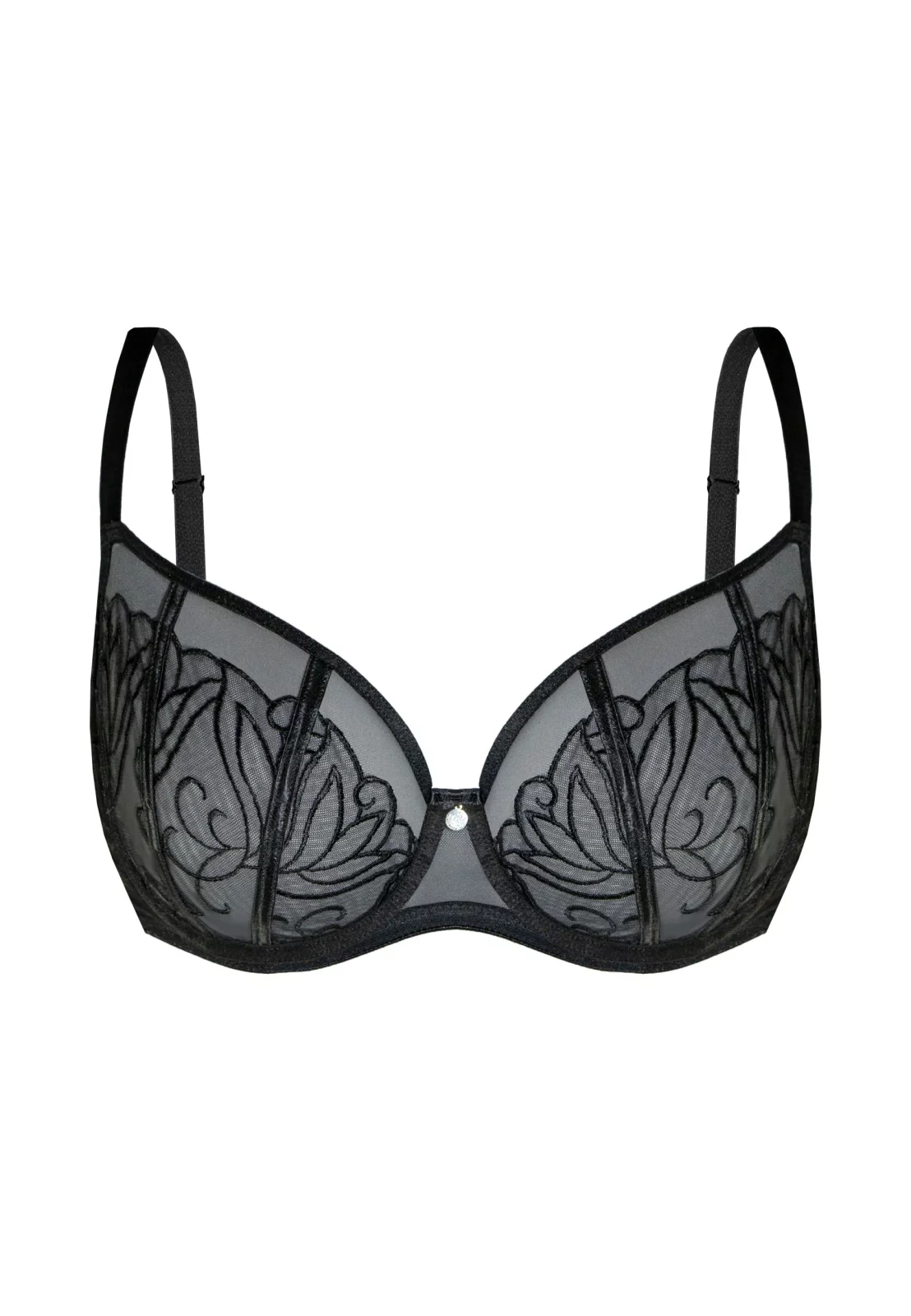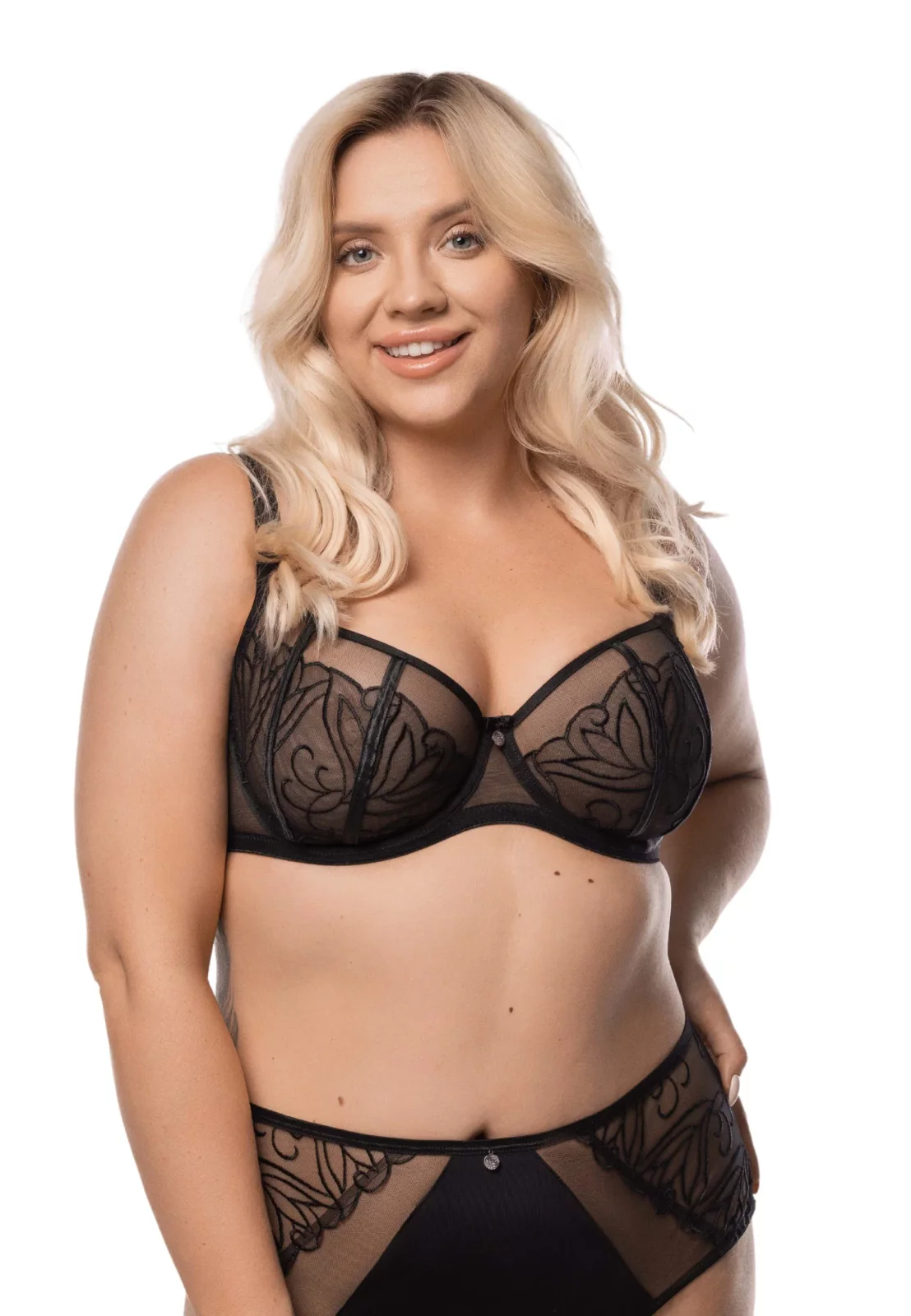 Biustonosz Grace marki Mefemi w eleganckim kolorze czarnym to wyjątkowy model dla kobiet ceniących komfort i styl. Wykonany z delikatnego tiulu z misternym haftem, zapewnia zarówno wygodę, jak i wyrafinowany wygląd. Jego miękkie miseczki doskonale dopasowują się do kształtu biustu, gwarantując naturalne podtrzymanie i subtelne podkreślenie kobiecych kształtów.