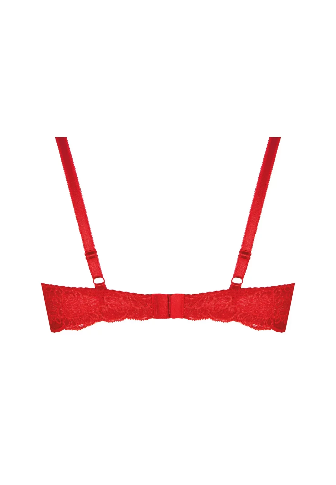 Miseczki zostały wykonane z wysokiej jakości koronki, która subtelnie podkreśla kobiecy urok i dodaje delikatności. Dzięki wbudowanym wkładkom push-up, biustonosz nie tylko modeluje i podnosi biust, ale także podkreśla dekolt, zapewniając efekt pełniejszego kształtu. Wykończenia w postaci koronkowych detali na ramiączkach i pasie dolnym dodają mu wyjątkowego uroku.