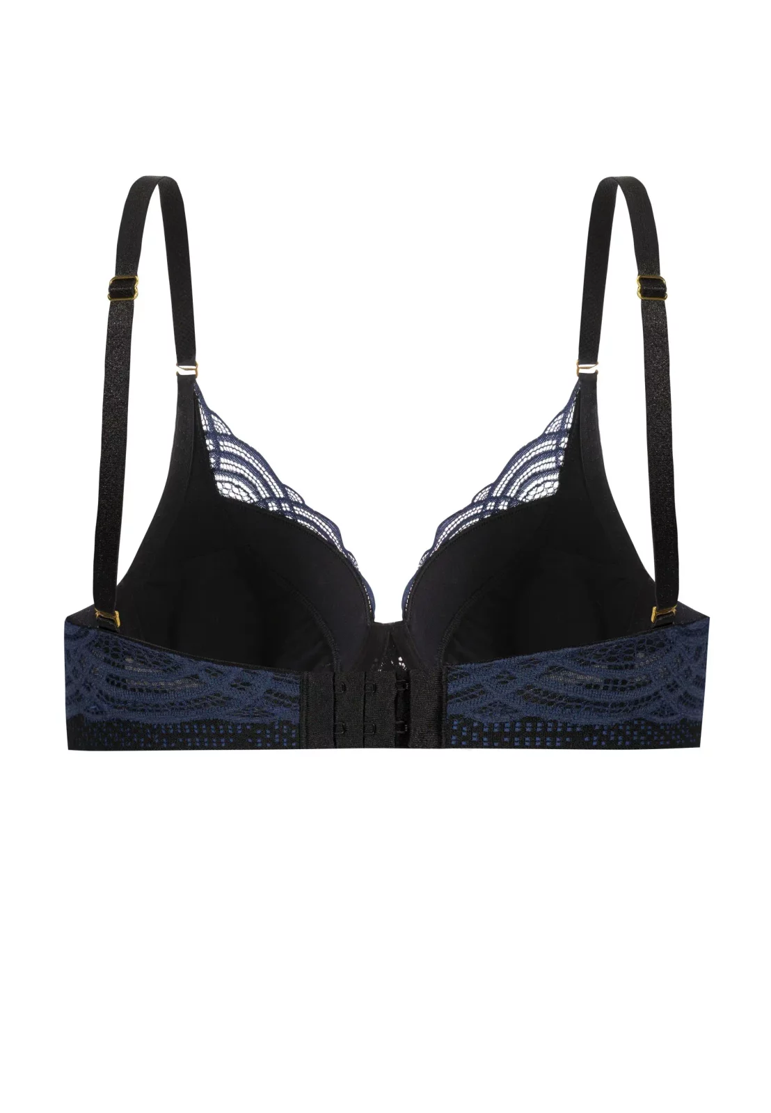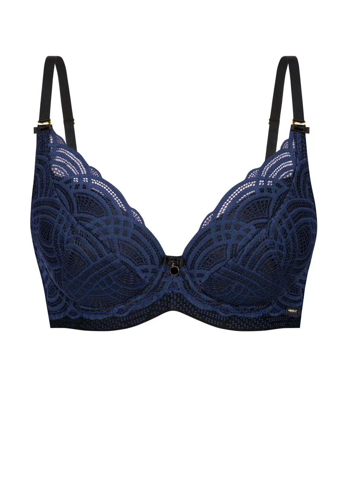 Biustonosz push-up Debora od Mefemi to doskonałe połączenie elegancji i wygody. Stworzony z wysokiej jakości materiałów, zapewnia maksymalny komfort noszenia i doskonałe podtrzymanie biustu. Model wyróżnia się koronkowym wykończeniem w odcieniu głębokiego granatu, które dodaje całości wyjątkowej delikatności i stylu. Dzięki miseczkom typu push-up biustonosz idealnie modeluje biust, nadając mu naturalny i pełny kształt.