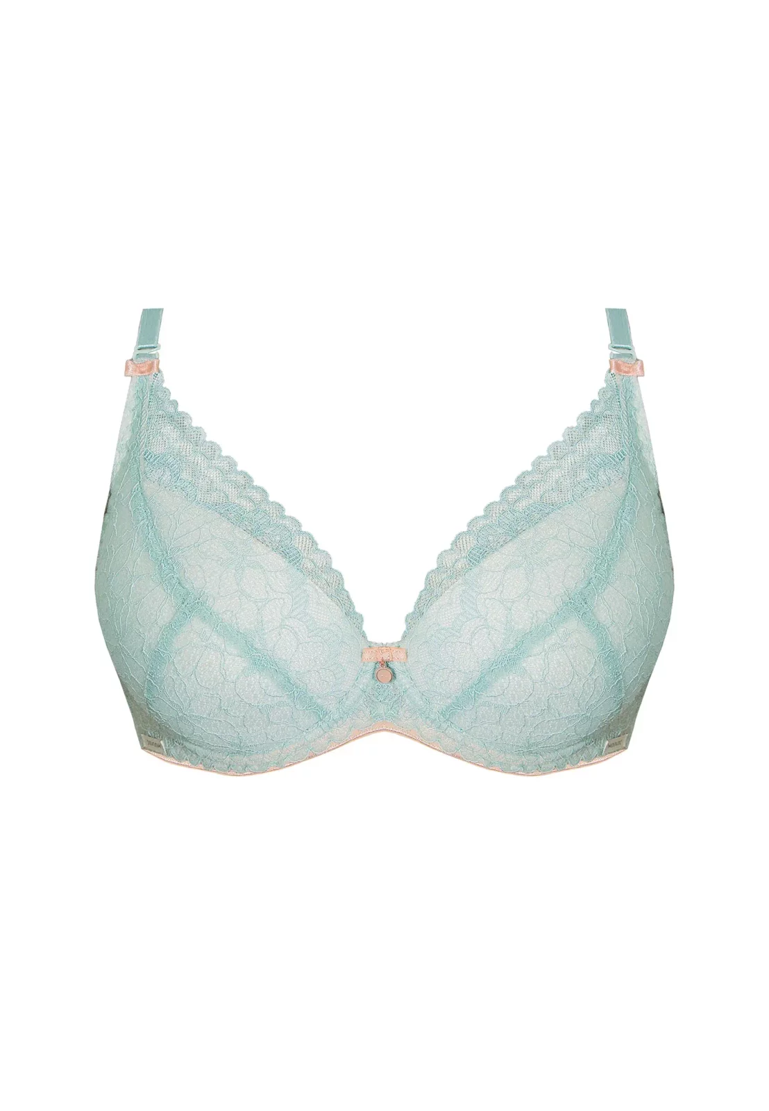 Poznaj wyjątkowy biustonosz push-up koronkowy Leocadia, który łączy subtelność koronki z perfekcyjnym dopasowaniem. Misternie zdobiona koronka w odcieniu delikatnej mięty nadaje mu niezwykle kobiecego i świeżego wyglądu, a subtelne detale, takie jak satynowa kokardka na mostku, dodają mu elegancji. Dzięki wbudowanym wkładkom push-up biust jest pięknie wymodelowany i podkreślony, co zapewnia efekt pełniejszych i zaokrąglonych kształtów.