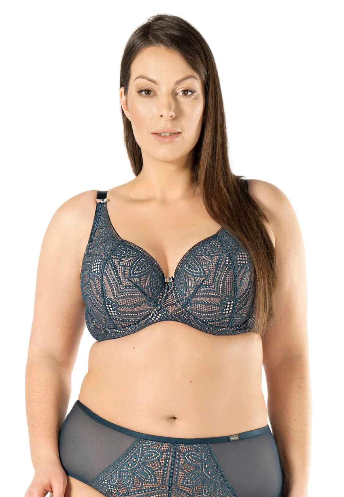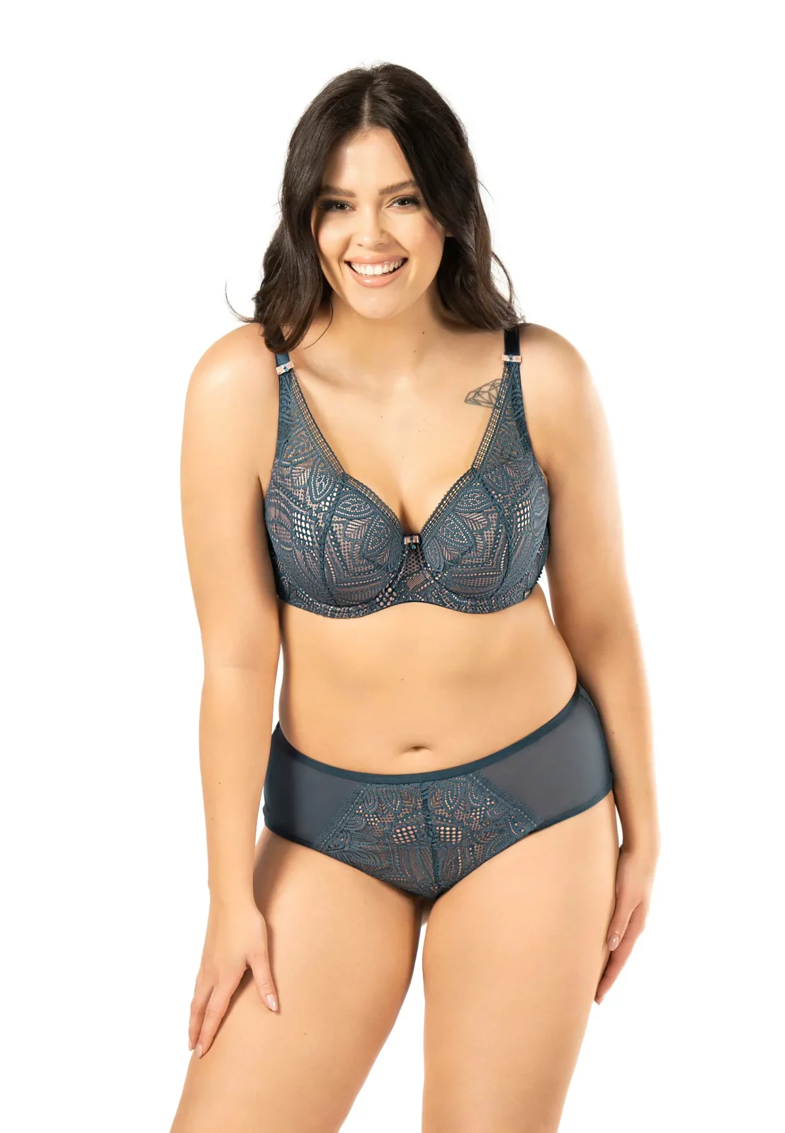 Biustonosz Daniela od Mefemi to doskonałe połączenie elegancji i komfortu. Model wykonany z delikatnej koronki, która podkreśla piękno i kobiecość. Usztywniana konstrukcja zapewnia odpowiednie podparcie, modelując biust i nadając mu naturalny kształt. Idealny wybór na co dzień oraz wyjątkowe okazje, gwarantując pewność siebie i wygodę przez cały dzień.