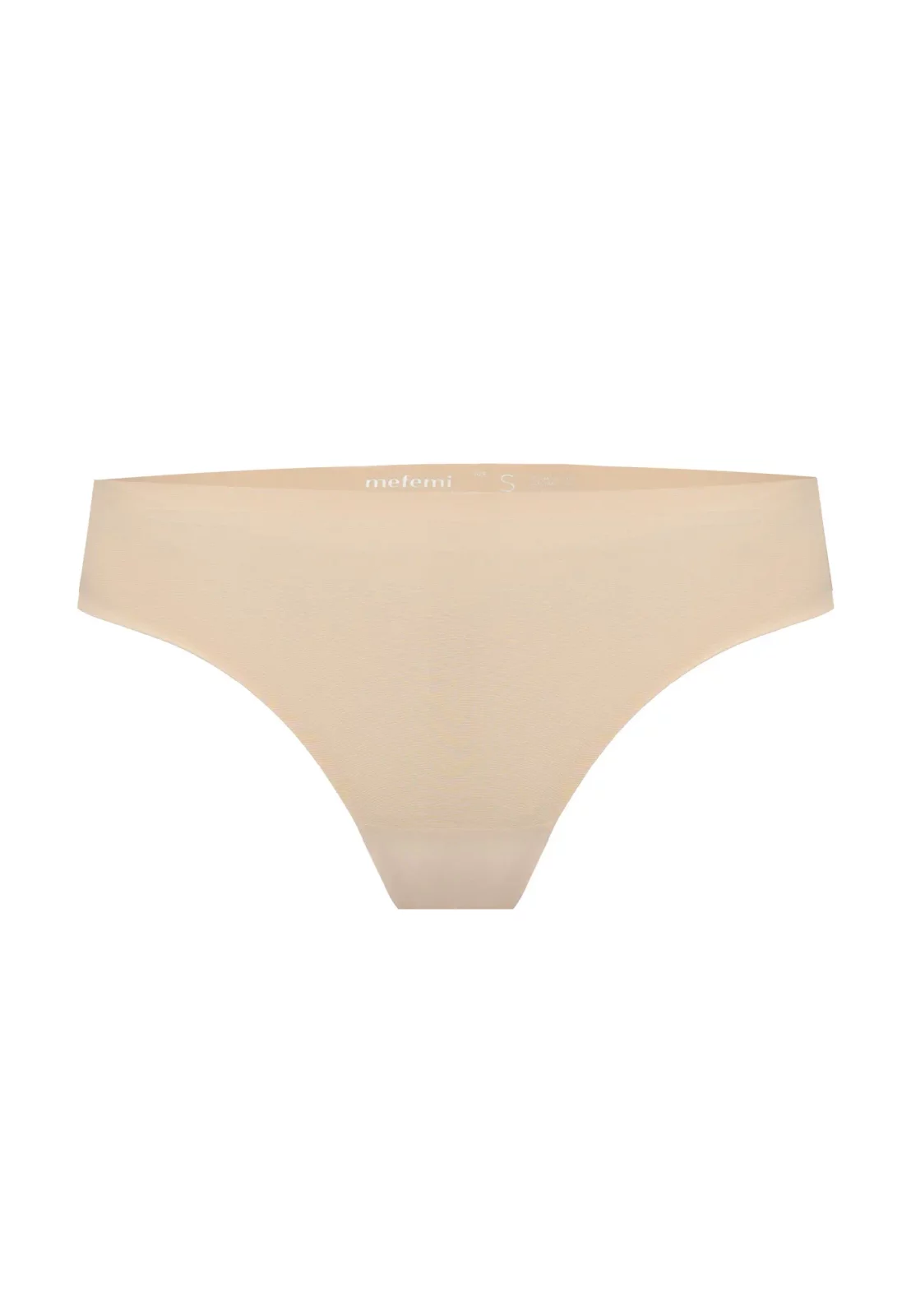 Brazyliany Silvia marki Mefemi to połączenie wyjątkowej wygody i estetyki w codziennym noszeniu. Wykonane w technologii bezszwowej, zapewniają pełną swobodę ruchu oraz dyskrecję pod obcisłymi ubraniami. W uniwersalnym beżowym kolorze idealnie sprawdzą się pod każdym rodzajem ubrań.