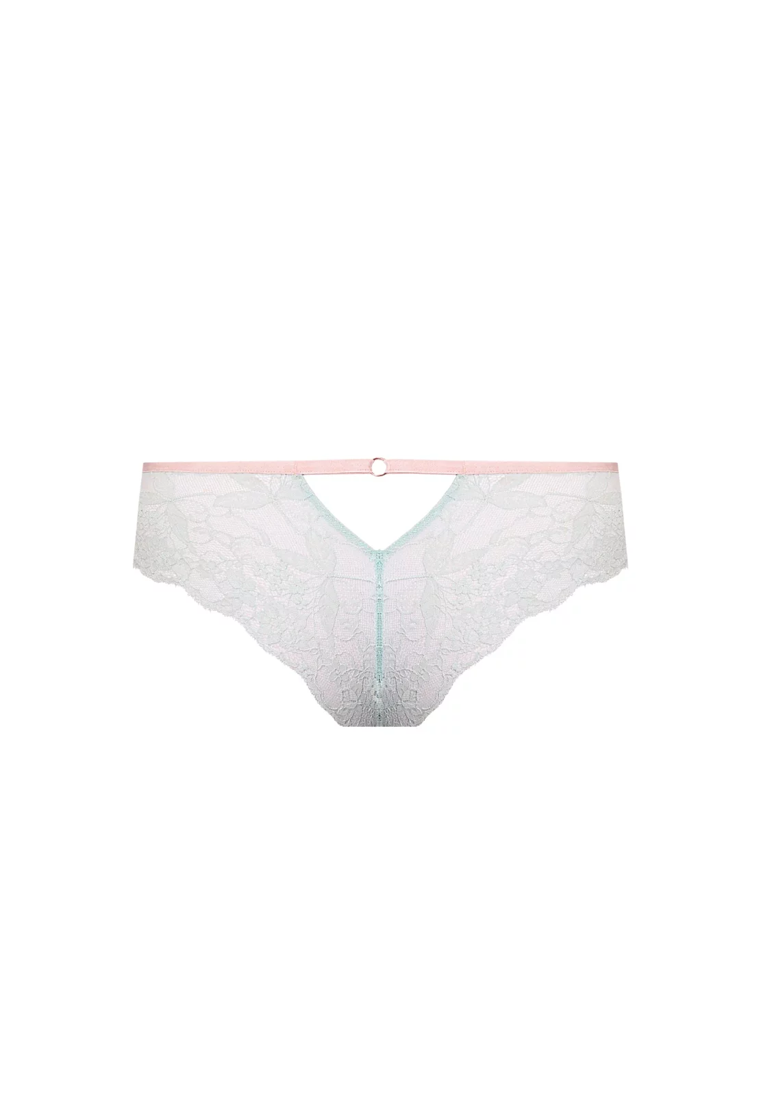 Brazyliany Aria od Mefemi to zmysłowa propozycja dla kobiet, które kochają subtelną elegancję i kobiece detale. Przód wykonany z delikatnej, mlecznoróżowej siateczki, subtelnie kontrastuje z tyłem z transparentnej pastelowobłękitnej koronki, która pięknie eksponuje pośladki. Koronkowe wykończenie z tyłu nadaje figom lekkości i romantycznego charakteru, a elastyczna lamówka w talii zapewnia wygodne dopasowanie bez ucisku. Ozdobny detal z kółeczkiem na plecach przyciąga wzrok i dodaje uroku. Brazyliany Aria idealnie sprawdzą się zarówno na co dzień, jak i na wyjątkowe okazje – doskonale komponują się z biustonoszem Aria double push-up z tej samej linii!
