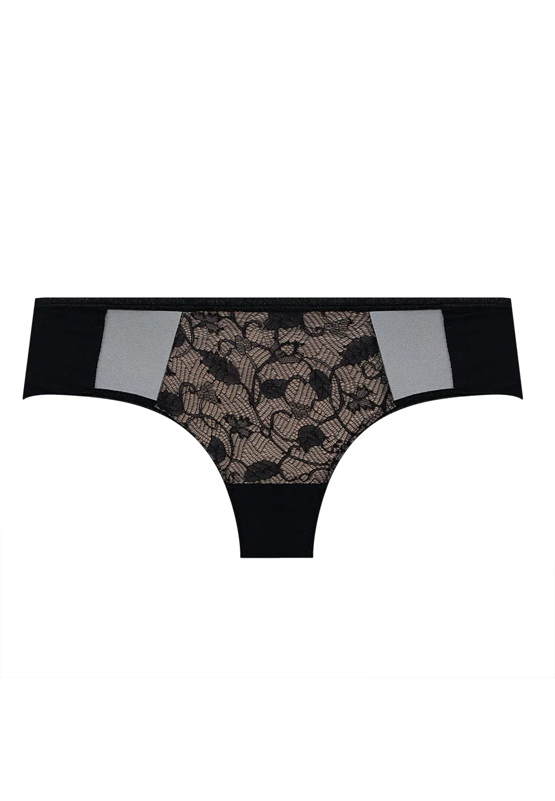 Brazyliany Victoria marki Mefemi w kolorze czarnym to idealne połączenie stylu, wygody i zmysłowości. Wykonane z delikatnej koronki o wyjątkowym wzorze, zachwycają elegancją i subtelnym podkreśleniem kobiecej sylwetki. Transparentne wstawki dodają bieliźnie lekkości i wyjątkowego charakteru, czyniąc ją doskonałym wyborem na każdą okazję.