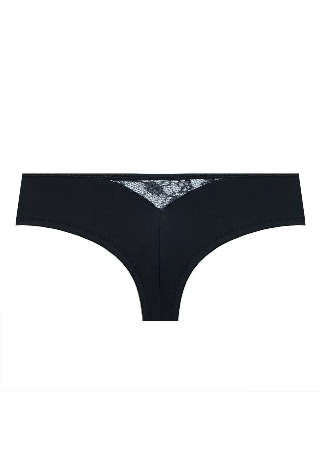 Przód brazylianów ozdobiony jest piękną koronką, która w połączeniu z gładkimi elementami zapewnia harmonijny wygląd. Tył natomiast przyciąga uwagę dzięki koronkowemu wykończeniu w kształcie litery "V", które optycznie modeluje i podkreśla krągłości. Elastyczne materiały i precyzyjne wykonanie gwarantują komfort noszenia przez cały dzień.