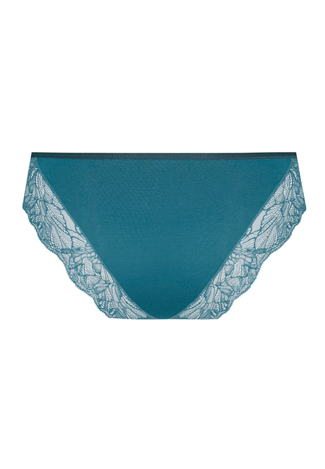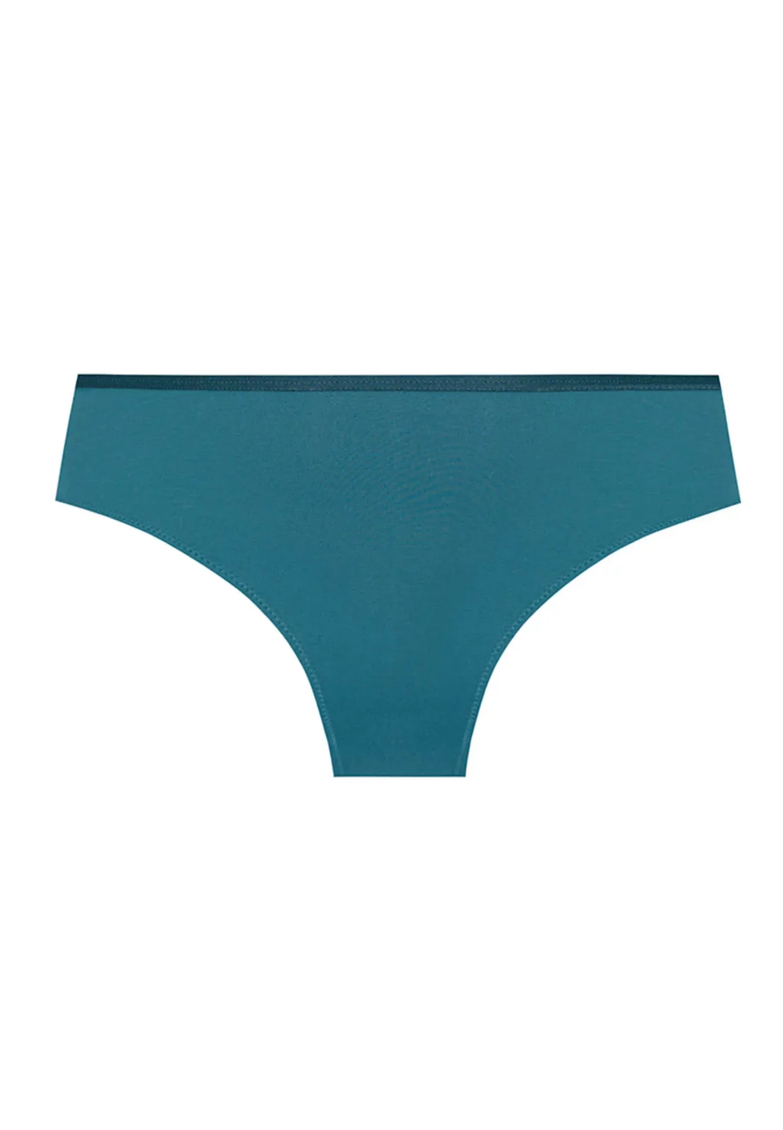 Przód fig Dolores zachwyca minimalistycznym designem, a tył zdobiony koronką o subtelnym kwiatowym wzorze nadaje im wyjątkowego charakteru. Delikatna koronka nie tylko dodaje elegancji, ale także sprawia, że model wyróżnia się na tle innych fig. W kolorze turkusowym figi Dolores stanowią doskonałe uzupełnienie zarówno codziennej, jak i bardziej eleganckiej bielizny.