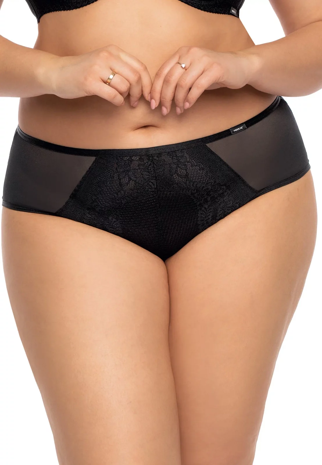 Figi wykonane są z miękkiej i elastycznej tkaniny, która delikatnie otula skórę, gwarantując swobodę ruchów. Koronkowe zdobienia dodają im subtelnego uroku i kobiecego charakteru, tworząc bieliznę, która zachwyca zarówno wyglądem, jak i funkcjonalnością. To idealny wybór na każdą okazję – od codziennych stylizacji po wyjątkowe momenty.