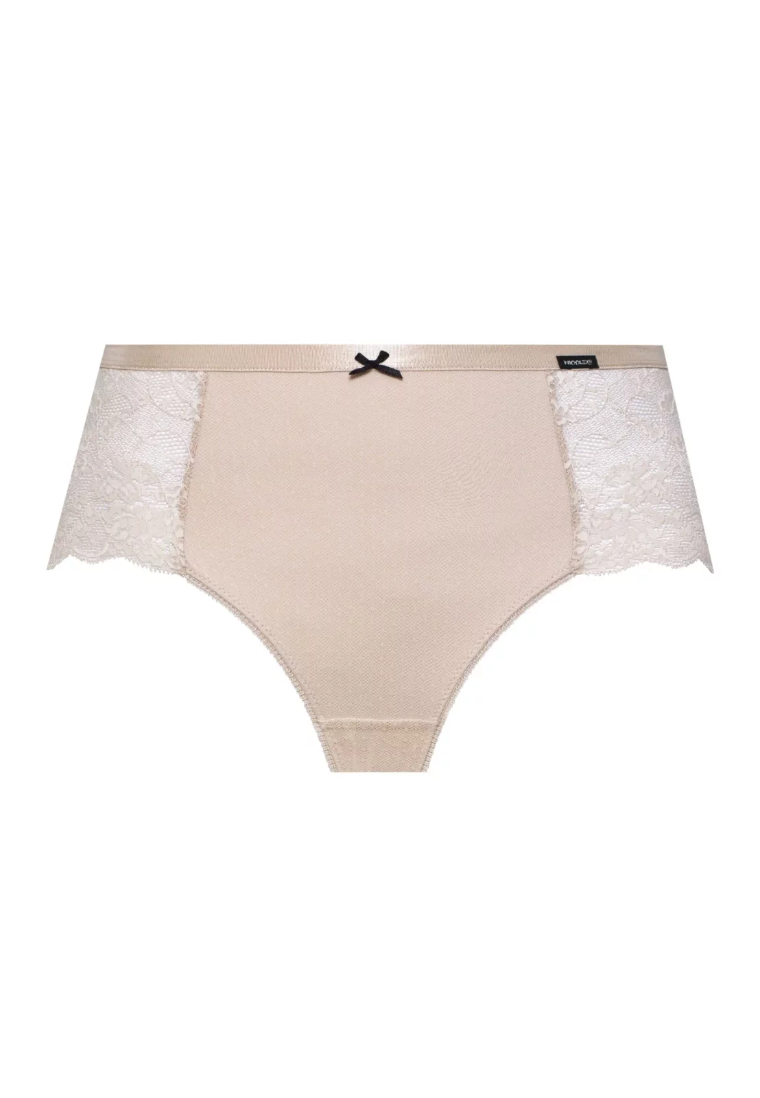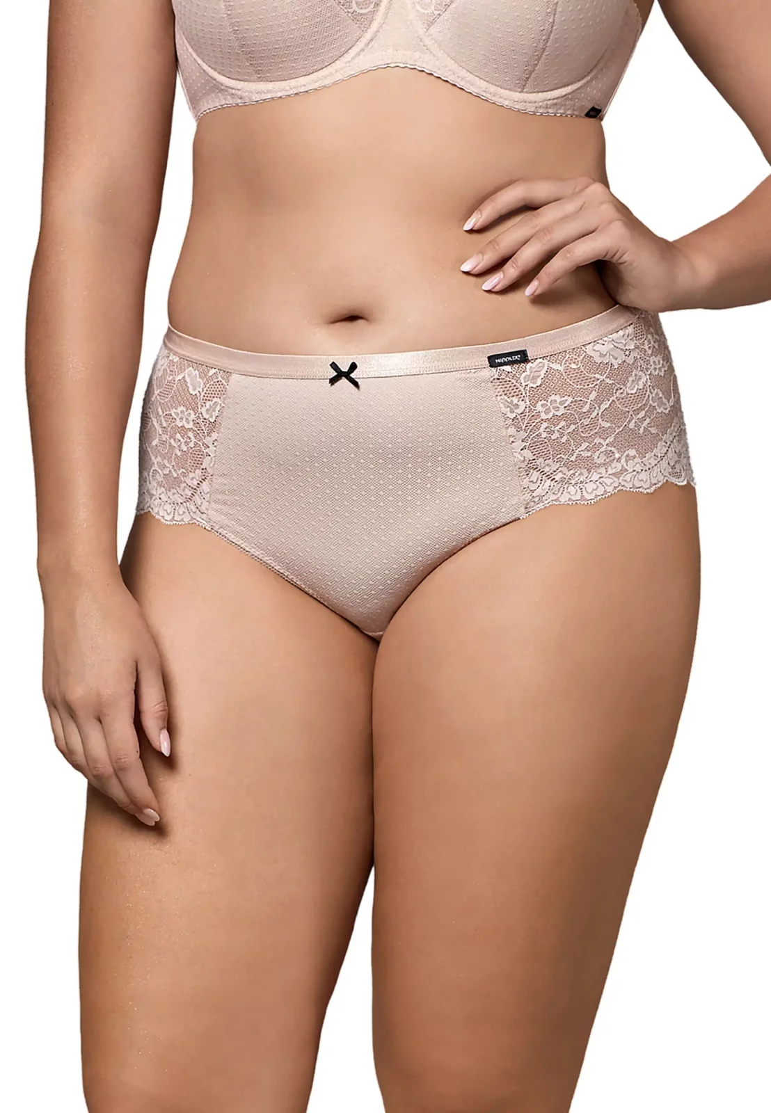 Z przodu figi zdobi subtelna kokardka, która nadaje im uroku i elegancji. Prześwitujące boki z cienkiej koronki dodają lekkości i sprawiają, że model prezentuje się wyjątkowo kobieco.