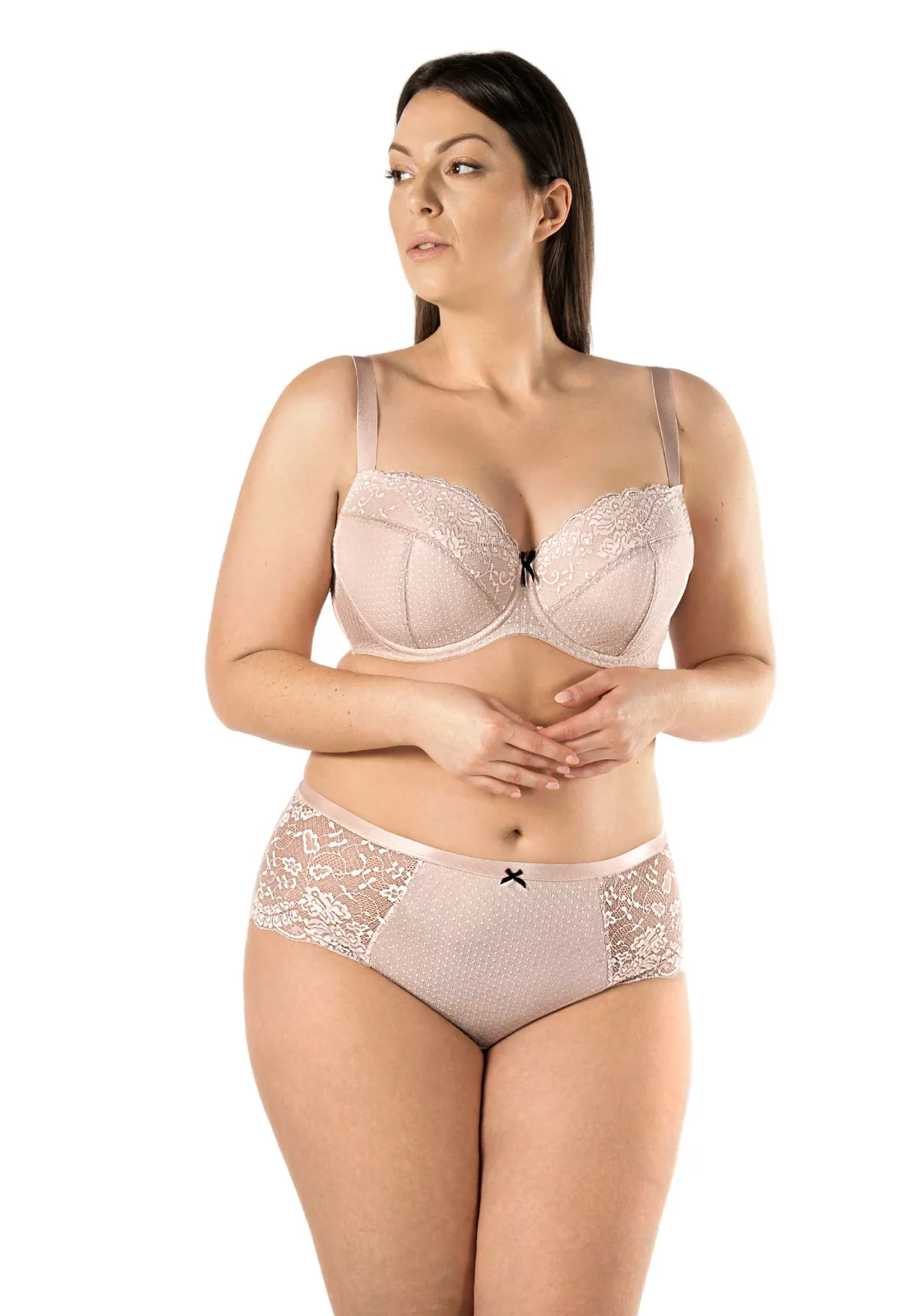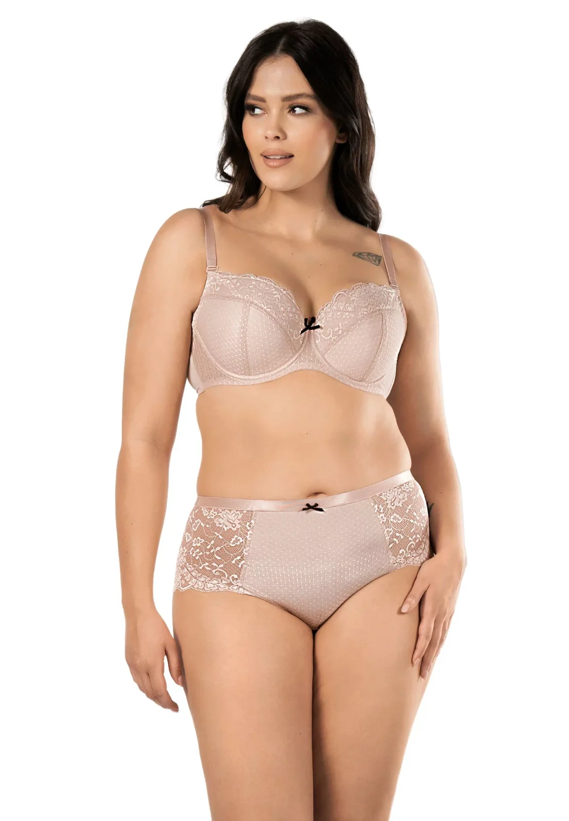 Tył fig jest bardziej zabudowany, zapewniając komfort i doskonałe dopasowanie. Wykończony został cienką warstwą koronki, która harmonijnie łączy estetykę z funkcjonalnością. Figi Pia w kolorze cappuccino to uniwersalny i stylowy wybór na każdą okazję – eleganckie, wygodne i niezwykle kobiece.