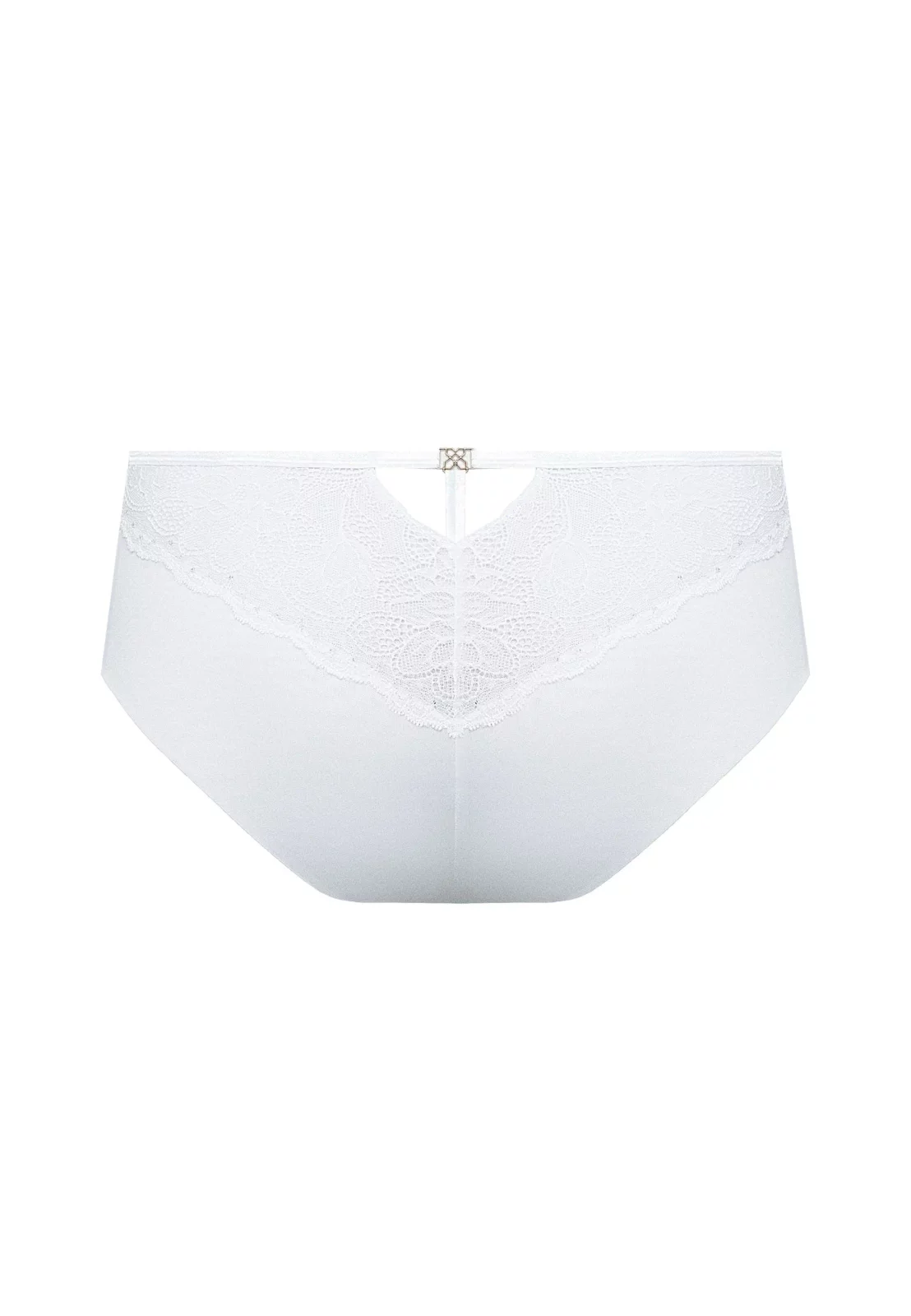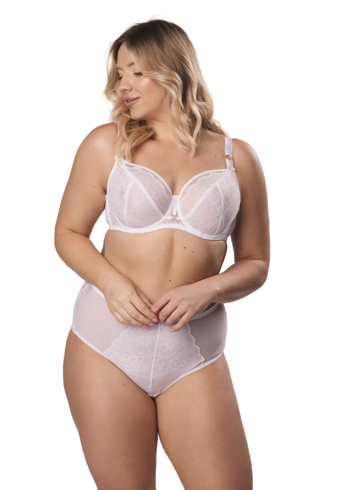 Wykonane z miękkiej, elastycznej siateczki i ozdobione subtelną koronką, figi Abia prezentują się niezwykle kobieco i zmysłowo. Wstawki z haftem w przedniej i tylnej części nadają lekkości i podkreślają linię pośladków, jednocześnie zapewniając pełne krycie. To doskonała propozycja zarówno na co dzień, jak i na specjalne okazje.