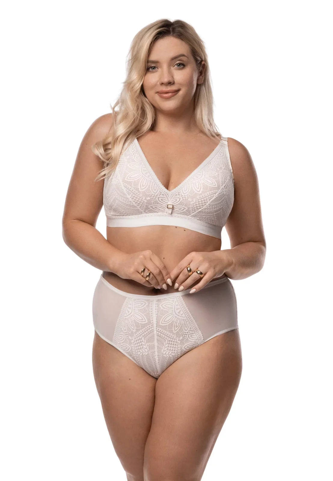 Poznaj wyjątkowe figi wysokie koronkowe Desire, które łączą w sobie elegancję, wygodę i subtelną zmysłowość. Model ten został wykonany z delikatnej koronki o unikalnym, geometrycznym wzorze, który dodaje bieliźnie niepowtarzalnego charakteru. Ich elegancki mleczny odcień podkreśla kobiecy wdzięk i sprawia, że idealnie komponują się z każdym typem sylwetki.