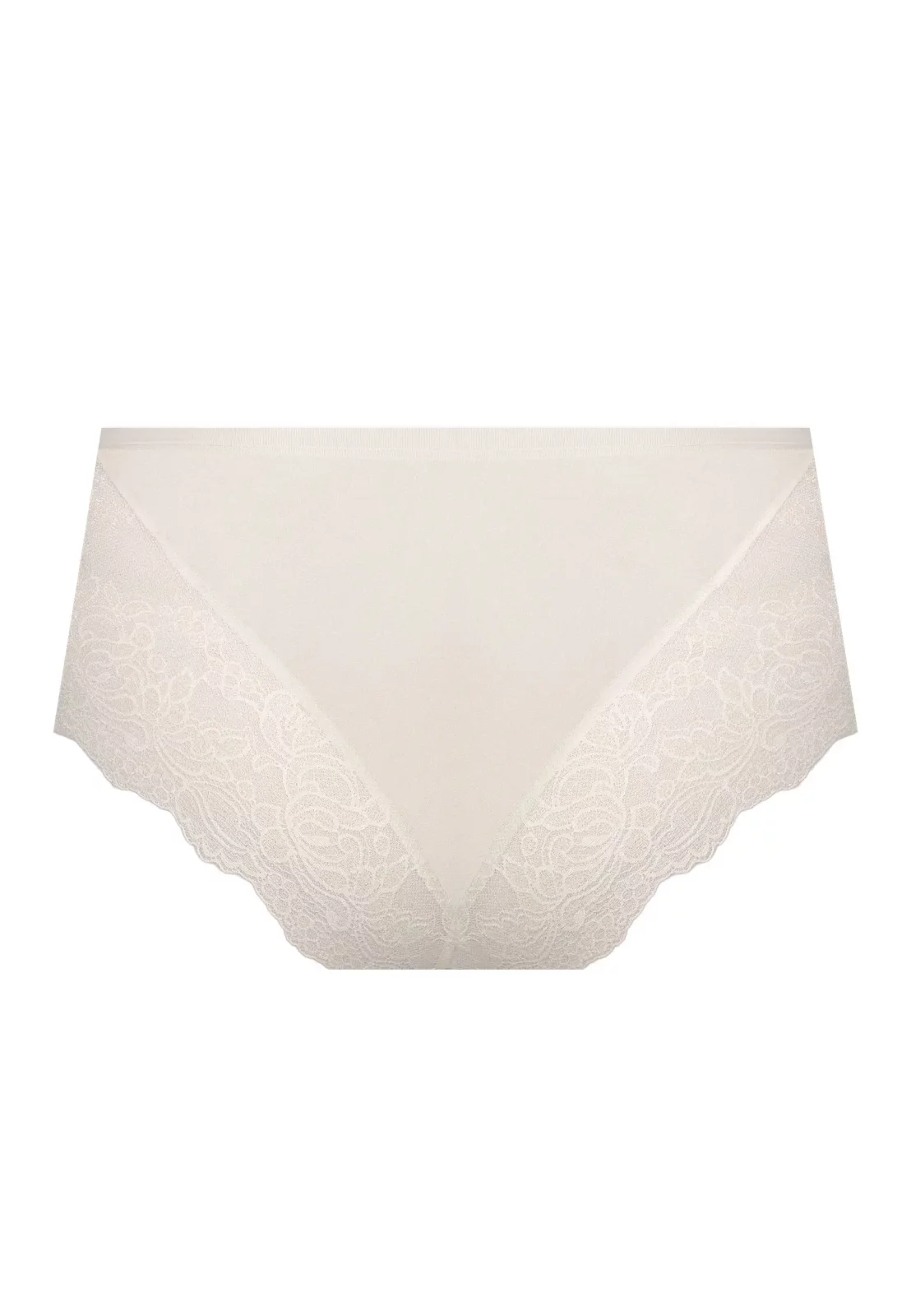 Figi Ksenia wyróżniają się wysokim stanem, który zapewnia doskonałe dopasowanie do sylwetki i delikatne modelowanie brzucha. Przód wykonany z eleganckiej koronki przechodzącej na biodra dodaje subtelności i lekkości, a gładki, miękki tył gwarantuje maksymalny komfort przez cały dzień. Elastyczna gumka w pasie sprawia, że figi idealnie leżą, nie powodując ucisku.