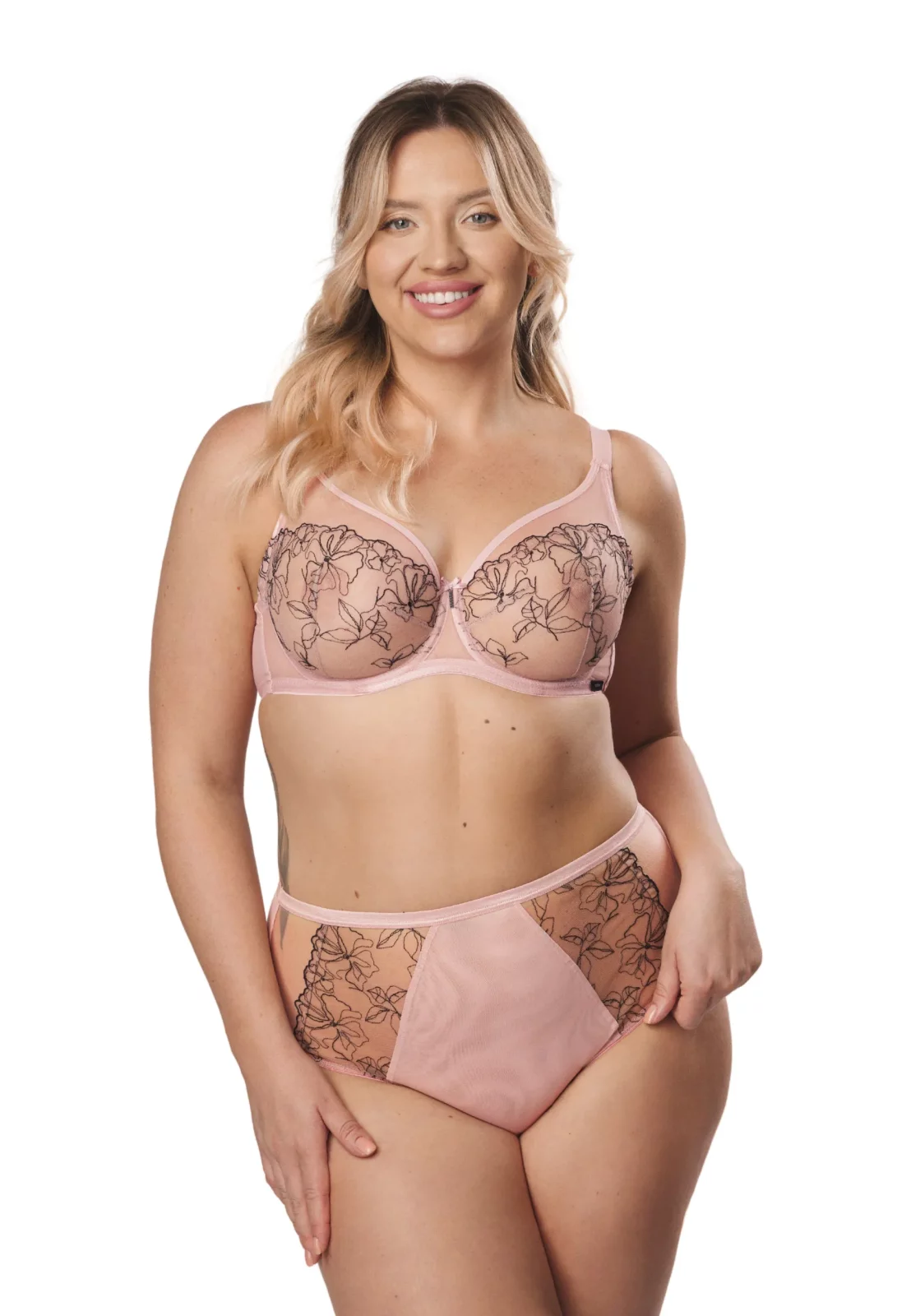 Figi wysokie Andrea marki Mefemi to idealne połączenie subtelnej elegancji i komfortu. Wykonane z delikatnej, pudrowo-różowej tkaniny, ozdobione zmysłowym, kwiatowym haftem, dodają kobiecego uroku każdej stylizacji. Wysoki stan zapewnia doskonałe dopasowanie i optyczne wysmuklenie sylwetki, a elastyczny materiał gwarantuje wygodę noszenia przez cały dzień. Idealne do kompletu z biustonoszem Andrea, tworzą harmonijny zestaw bielizny na każdą okazję. Wybierz majtki Andrea i poczuj się wyjątkowo każdego dnia! Do kompletu koniecznie dobierz biustonosz Andrea soft.