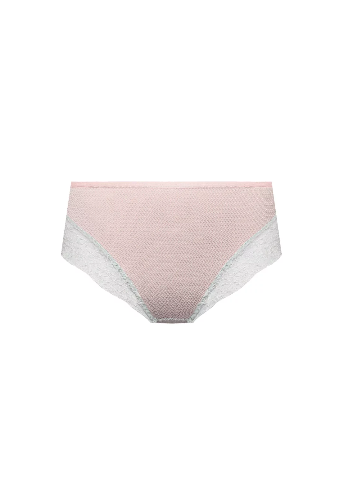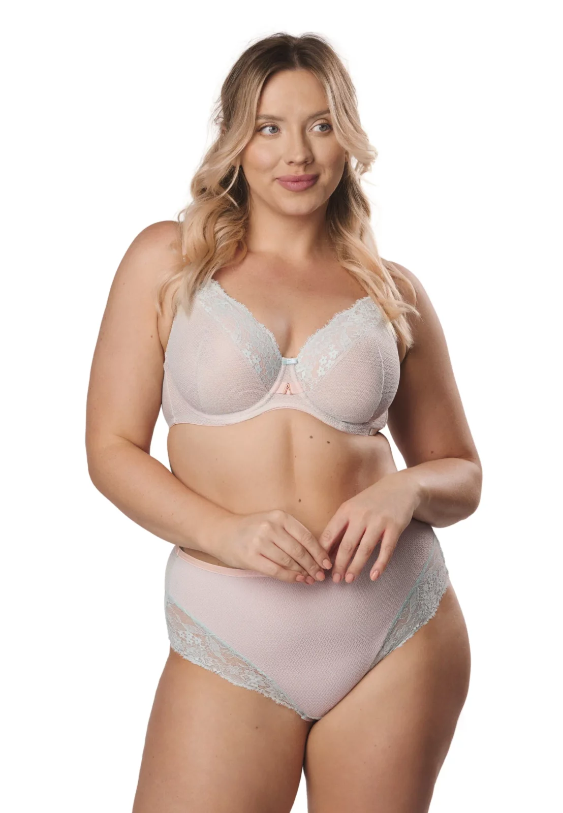 Wysokie figi Aria od Mefemi to idealne połączenie wygody, zmysłowości i elegancji. Wykonane z miękkiej, lekko elastycznej siateczki w kolorze mlecznego różu, zostały ozdobione po bokach i z tyłu delikatną, błękitną koronką, która subtelnie podkreśla kobiece kształty. Krój z wysokim stanem pięknie wygładza sylwetkę i zapewnia komfort noszenia przez cały dzień. Tył wykonany z transparentnej koronki dodaje lekkości i zmysłowego uroku, a elastyczne wykończenia dbają o idealne dopasowanie bez uciskania. Figi Aria to doskonały wybór dla kobiet, które szukają komfortowej i efektownej bielizny na co dzień. Sprawdź koniecznie biustonosz usztywniany Aria i stwórz set idealny!