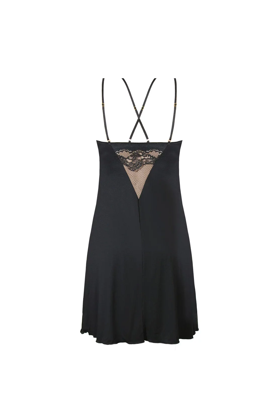 Tył koszulki to prawdziwe dzieło sztuki – głęboko wycięta linia i koronkowe detale subtelnie podkreślają plecy, nadając modelowi zmysłowy i romantyczny charakter. Lekko rozkloszowany fason dolnej części koszulki zapewnia swobodę ruchów i doskonałe dopasowanie do sylwetki. Casilda to idealny wybór zarówno na romantyczne wieczory, jak i na relaks w domowym zaciszu – bielizna, która sprawi, że zawsze będziesz czuła się wyjątkowo.