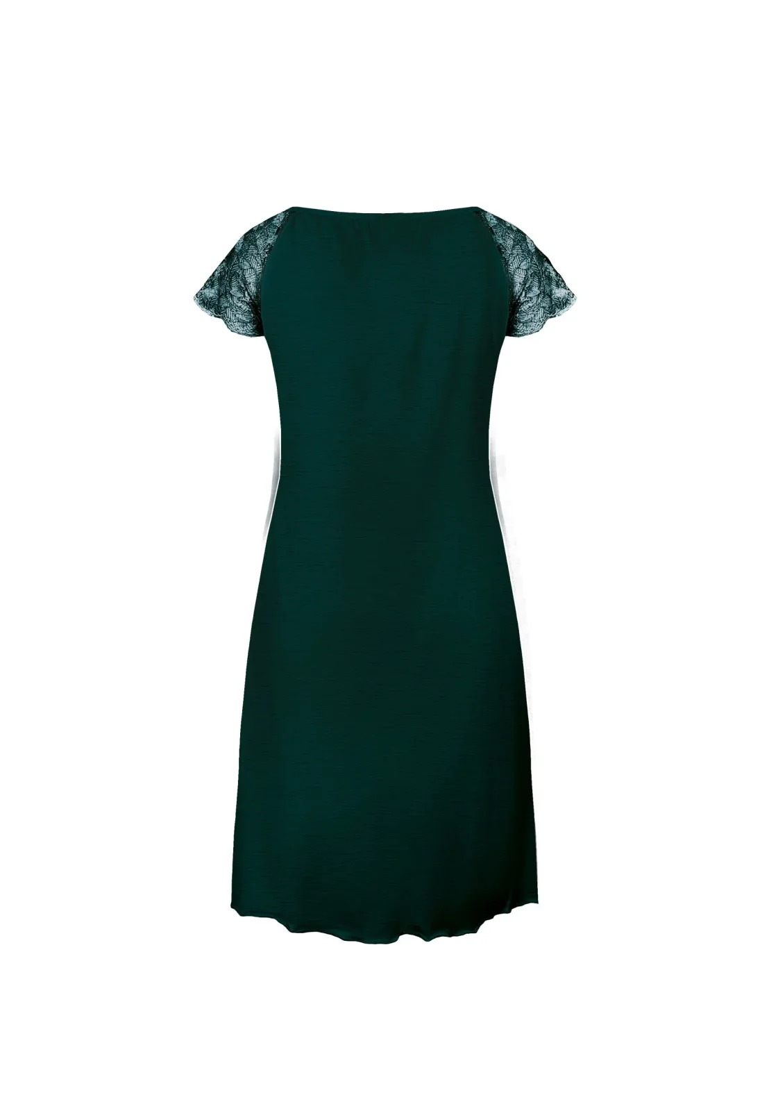 Wybierz koszulkę nocną Sabrina, która łączy w sobie elegancję, komfort i delikatność. Wykonana z wysokiej jakości wiskozy, koszulka ta zapewnia wyjątkową wygodę i przyjemne uczucie miękkości na skórze. Oddychający materiał gwarantuje komfort termiczny, dzięki czemu koszulka idealnie sprawdzi się przez cały rok.