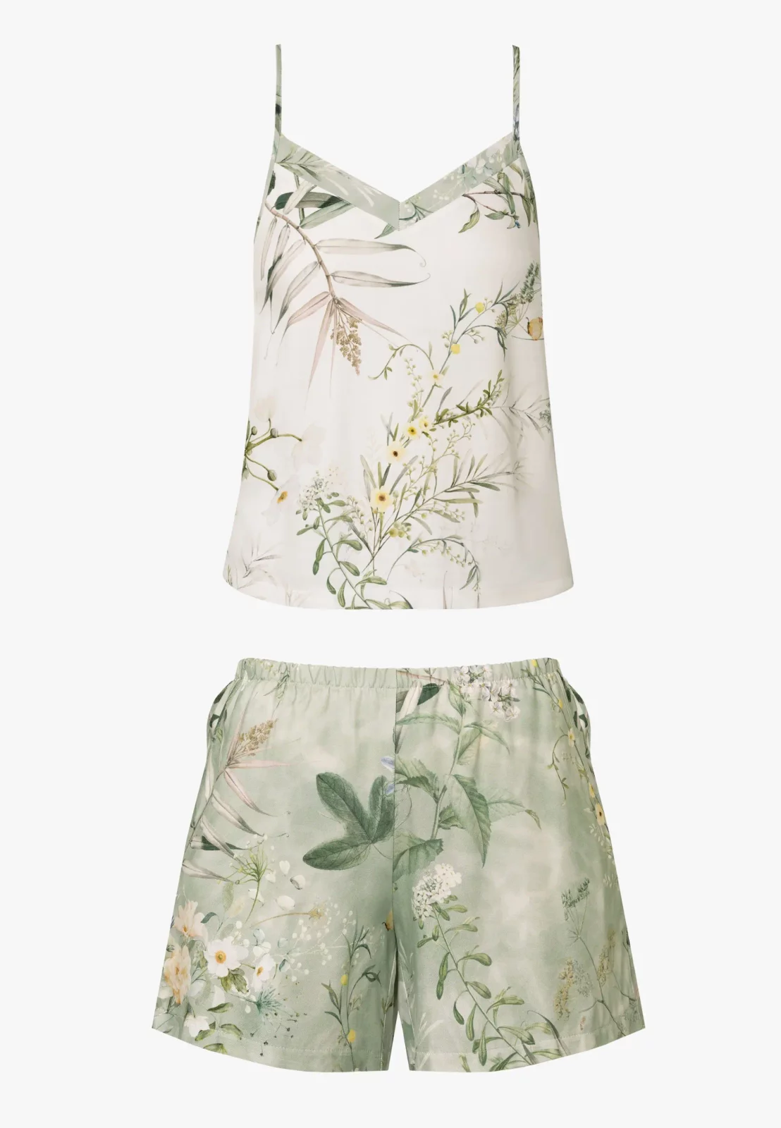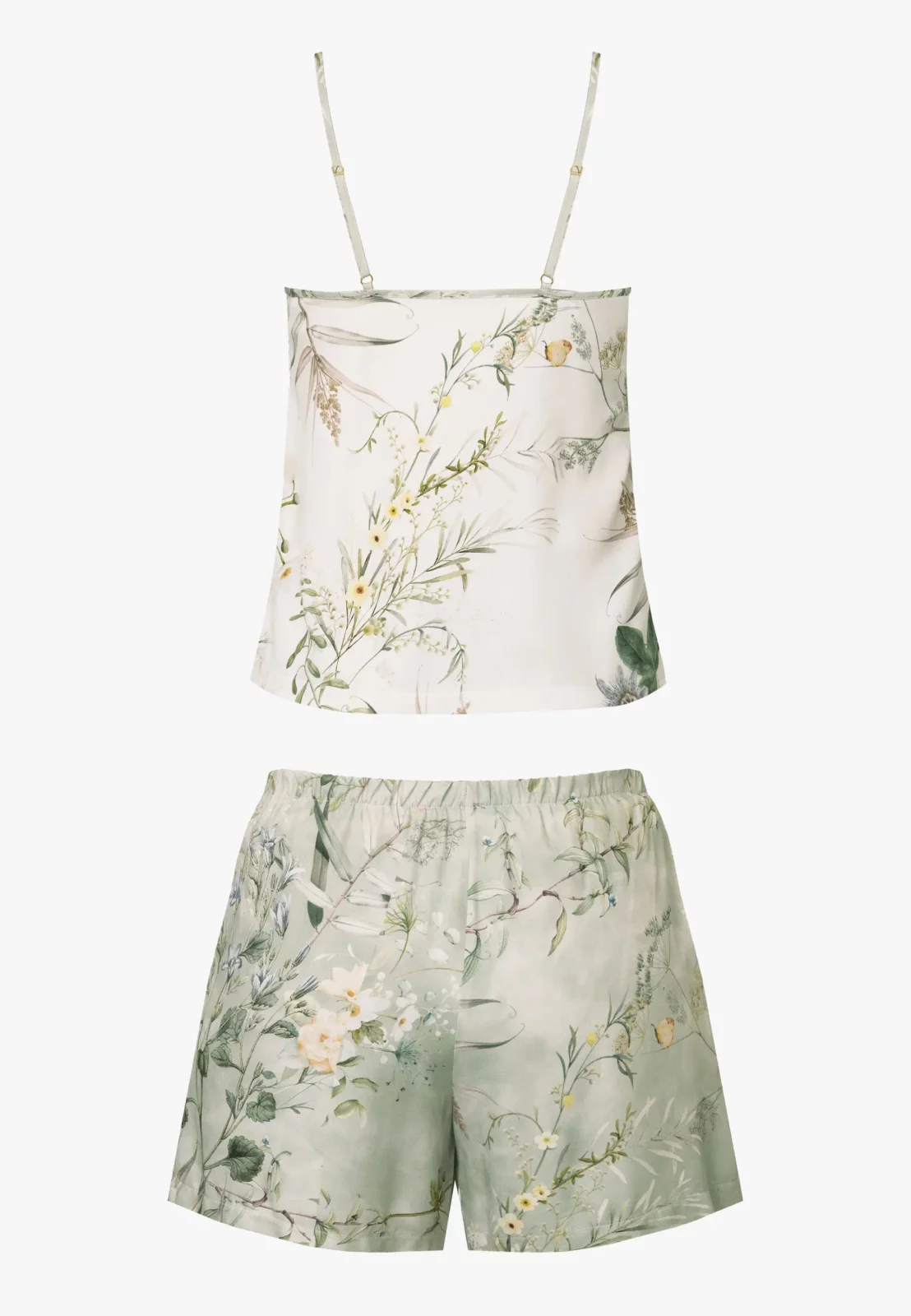 Wzór inspirowany delikatną roślinnością i pastelową paletą barw wprowadza subtelny, letni nastrój. Góra w kolorze ecru pięknie kontrastuje z dołem w odcieniu miękkiej zieleni, tworząc harmonijną, spójną całość. Lekka, oddychająca wiskoza zapewnia maksymalną wygodę podczas snu i wypoczynku, a przyjemna w dotyku tkanina miękko otula ciało.