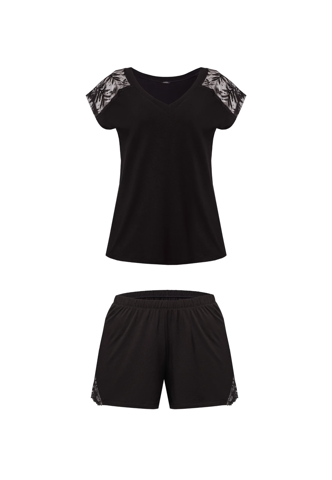 Piżama Petra to połączenie subtelnej elegancji z wygodą, której potrzebujesz każdego dnia. Wykonana z wysokiej jakości wiskozy, zachwyca miękkością, elastycznością i delikatnym połyskiem materiału. Tkanina idealnie dopasowuje się do sylwetki, zapewniając pełen komfort ruchu i przyjemne otulenie skóry. Góra piżamy ma dekolt w serek, który subtelnie podkreśla kobiecą linię szyi, a koronkowe wstawki na ramionach dodają jej lekkości i zmysłowego charakteru. Krótkie spodenki z elastyczną talią, ozdobione koronką po bokach, tworzą spójną, harmonijną całość. Model Petra to doskonały wybór dla kobiet, które cenią minimalizm, jakość i kobiecość w najlepszym wydaniu. Piżama sprawdzi się zarówno jako wygodny strój do snu, jak i stylowy homewear na leniwe wieczory. Dostępna w klasycznej, ponadczasowej czerni – zawsze modnej i eleganckiej.