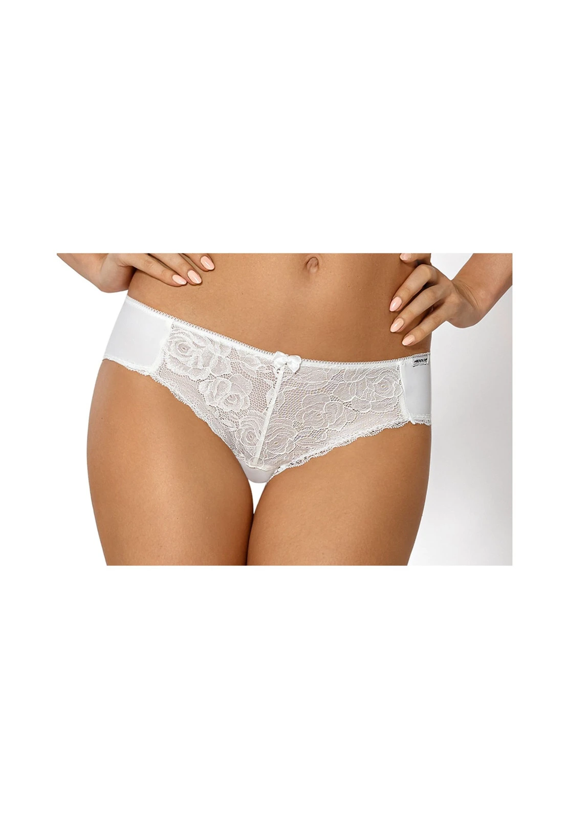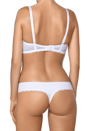 Bielizna dostępna jest w klasycznej bieli, co czyni ją doskonałą propozycją na ślubną stylizację lub na romantyczne wieczory. Model Elise II łączy w sobie seksowny charakter stringów z delikatnością koronki, tworząc harmonijną i zmysłową całość.