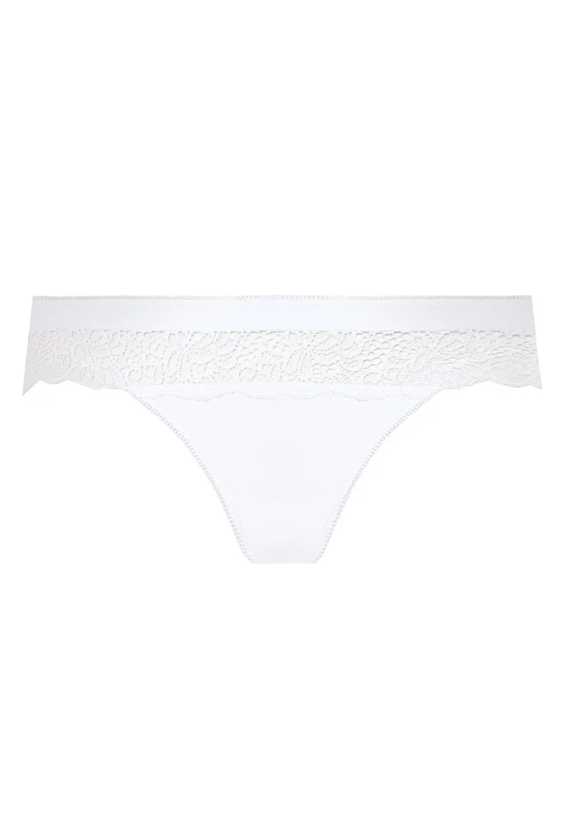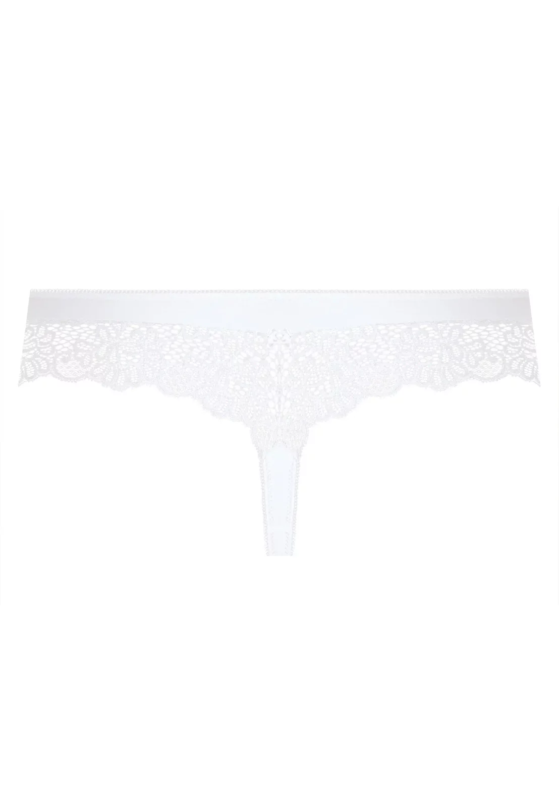 Przód stringów zdobi koronka o delikatnym, kwiatowym wzorze, która dodaje romantycznego i wyrafinowanego akcentu. Gładki pas na górze zapewnia wygodę i doskonałe dopasowanie, a subtelna kokardka na środku nadaje modelowi uroku. Wyjątkowo elegancki design sprawia, że stringi Claudia świetnie sprawdzą się zarówno na co dzień, jak i podczas wyjątkowych okazji.