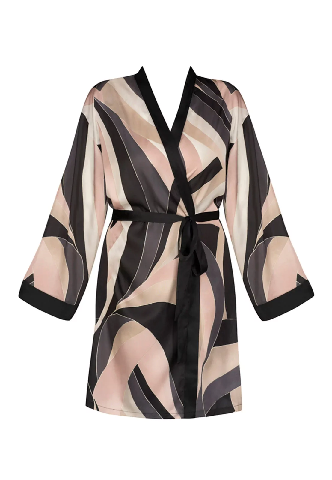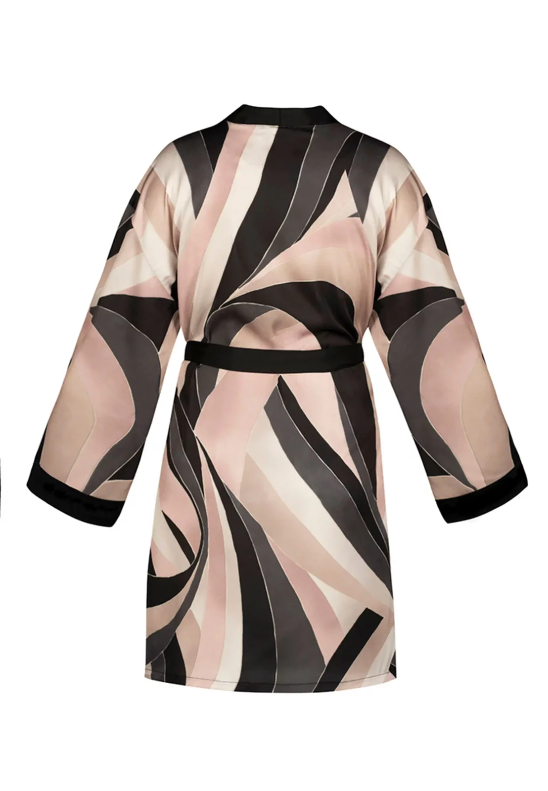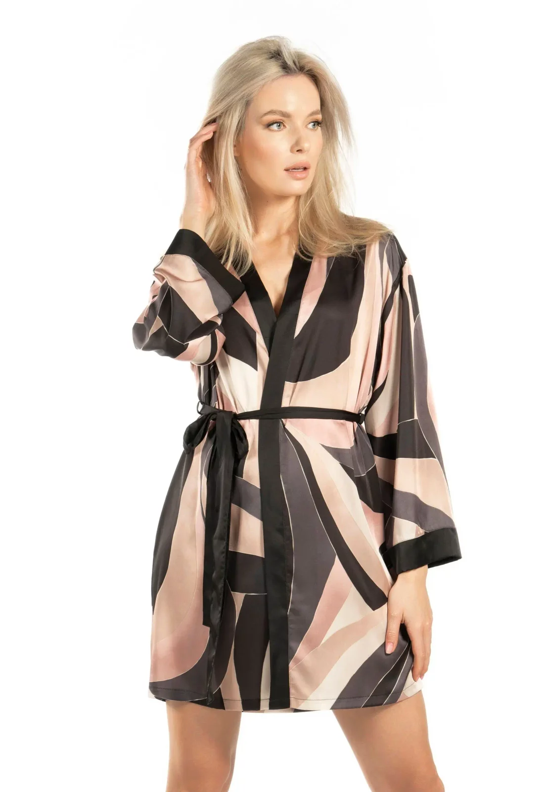 Szlafrok Delfina wyróżnia się swoim unikalnym wzorem geometrycznym, który dodaje całości nowoczesności i oryginalności. Przemyślany krój z wiązaniem w talii podkreśla sylwetkę, zapewniając jednocześnie wygodę i swobodę ruchów. Szerokie rękawy o lekko rozkloszowanym kroju to kolejny element, który nadaje temu szlafrokowi wyjątkowego uroku. To idealny wybór zarówno na wieczorny relaks, jak i na poranną kawę.