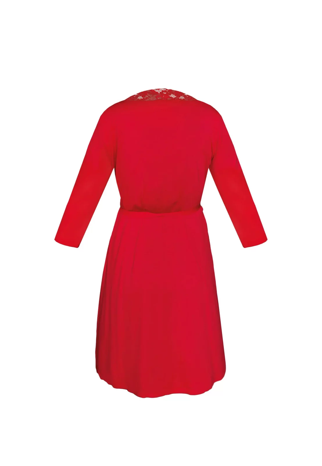 Zmysłowy i kobiecy szlafrok wiskozowy Bona w kolorze głębokiej czerwieni to propozycja dla kobiet ceniących połączenie komfortu i elegancji. Wykonany z przyjemnej w dotyku, oddychającej wiskozy, gwarantuje wygodę noszenia niezależnie od pory dnia. Koronkowe wykończenie dekoltu dodaje całości romantycznego charakteru i podkreśla linię biustu.
