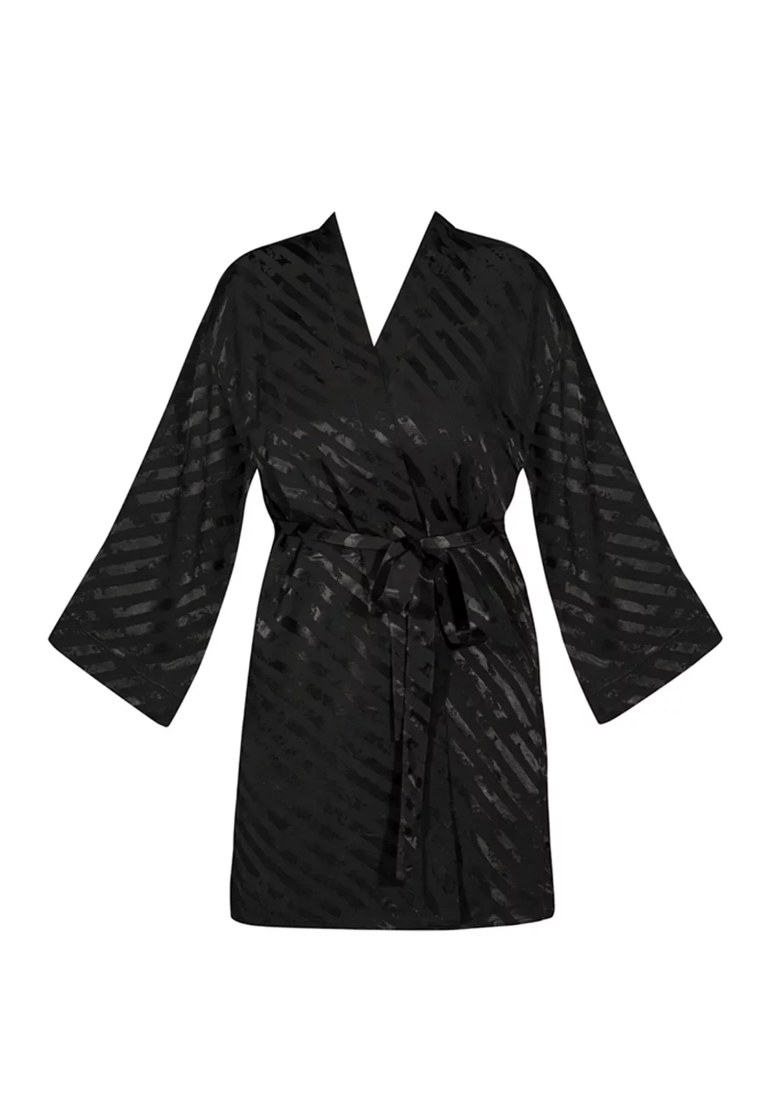 Przedstawiamy szlafrok Diana marki Mefemi – idealne połączenie nowoczesnej elegancji i wygody. Wykonany z delikatnego materiału o satynowym wykończeniu, doskonale dopasowuje się do sylwetki, zapewniając komfort noszenia przez cały dzień. Jego czarny kolor z subtelnym, mieniącym się wzorem podkreśla wyrafinowany styl i wyjątkowy charakter tego modelu.